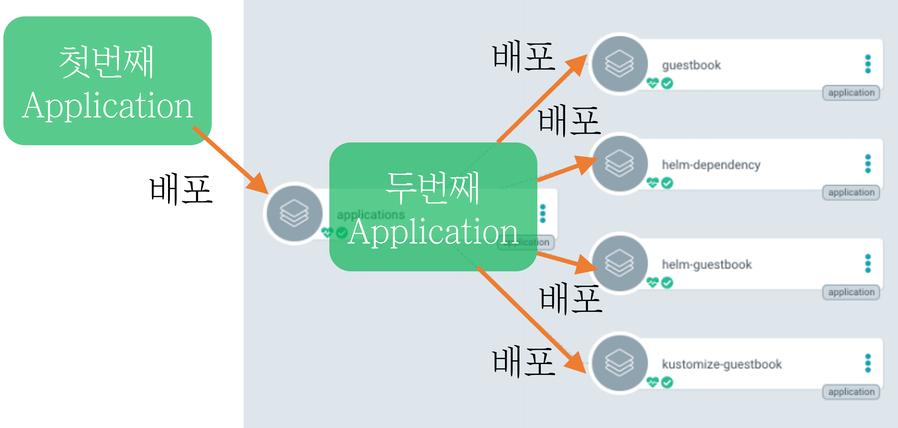 - apps 경로의 yaml 파일을 배포한다. (두번째 Application)